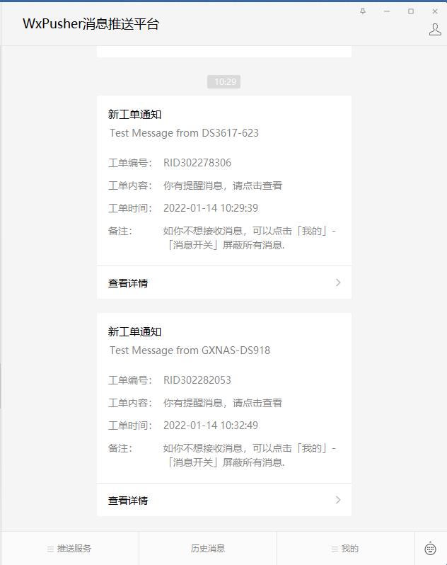十四、来看一下测试效果,微信收到的信息如下图显示,点进去可以看到具体的信息内容,由于发的测试信息所以就不放测试信息内容的图片了。