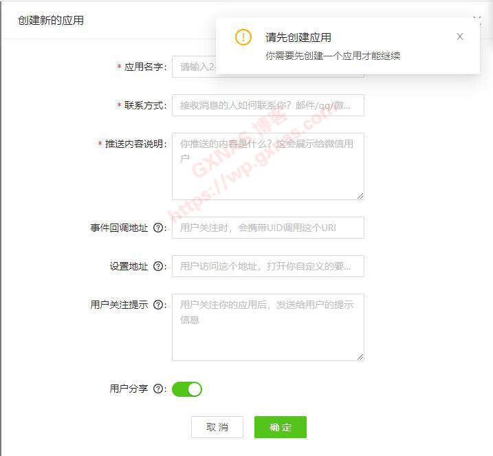 三、接着提示需要先创建新的应用,才可以使用;
