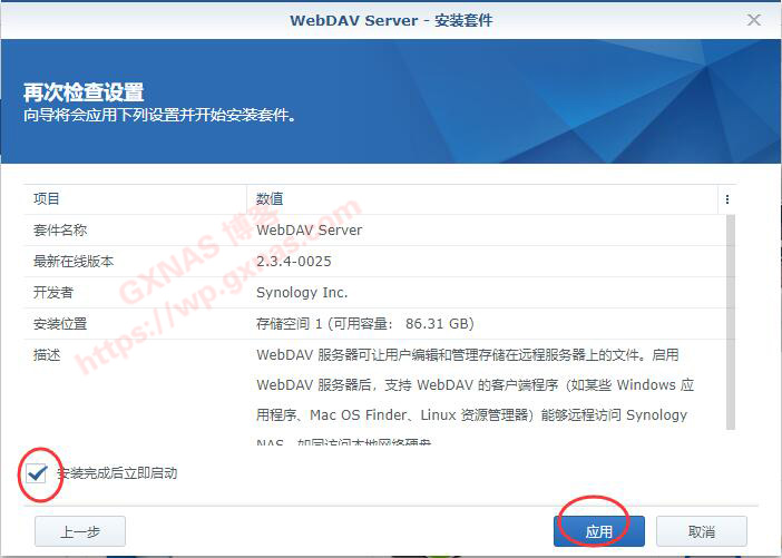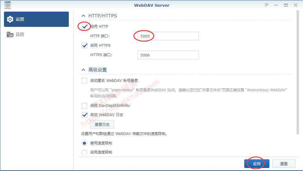 打开WEBDAV,检查一下是否启用,启用后,点:应用。
