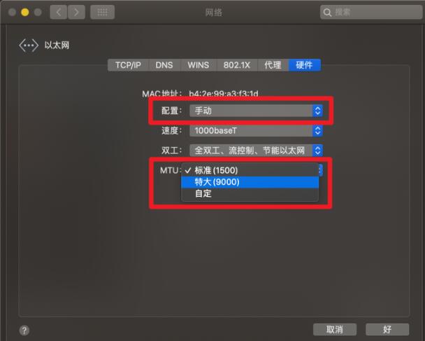网络,选中你的2.5G或者10G网卡,高级,硬件,手动设置 MTU 为 9KB。