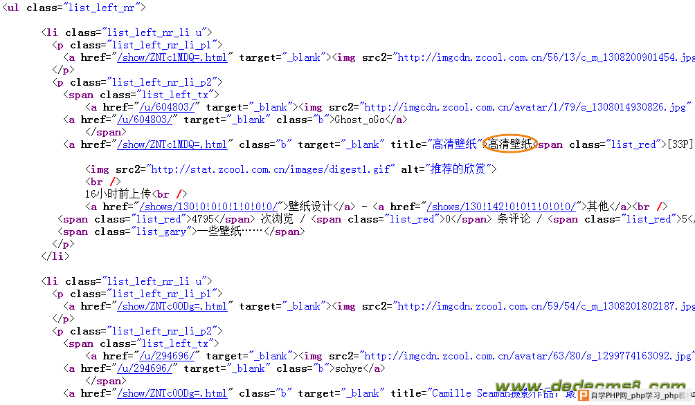 (a)在打开的内容页面的源代码中,找到内容的开始部分“一些壁纸”,如图31所示,