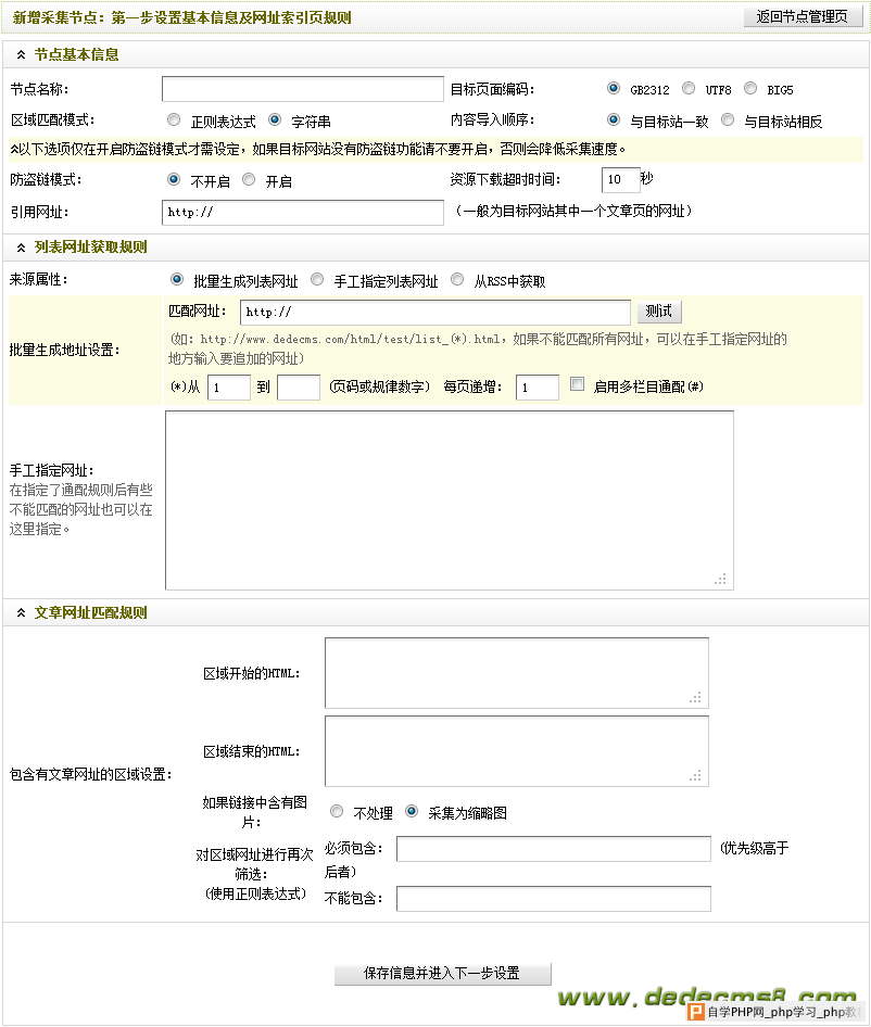 图4-新增采集节点:第一步设置基本信息及网址索引页规则