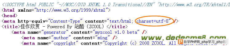 其等号后面的代码就是所需填写的“编码格式”,这里是“utf-8”。 填写后,如(图7)所示,