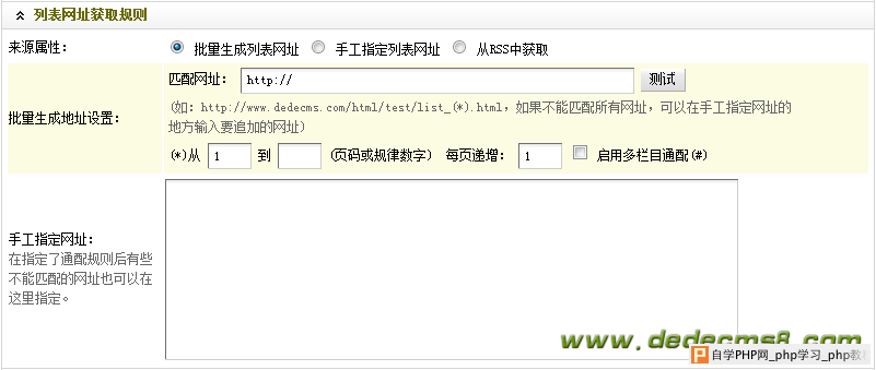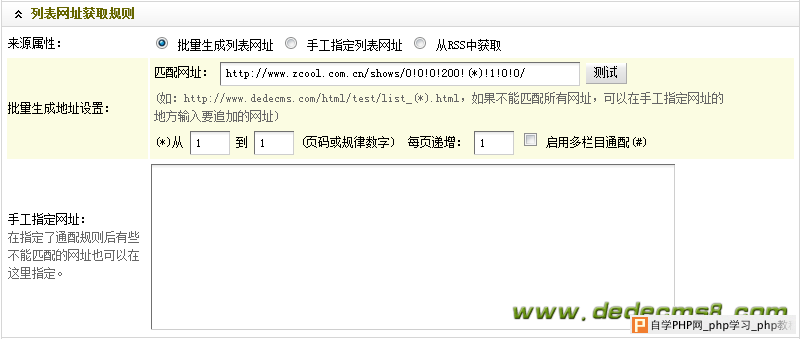 这里是设置被采集的列表页的匹配规则。 具体操作步骤: