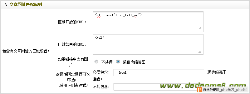 这个部分是编写采集规则的重点,也是难点。需要特别注意。 图片集合:如果把采集的匹配规则填写在这里的话,系统就会把所采集到的图片,以图集的形式保存起来,注意这里只采集图片。 图集内容:在显示图集的时候,所需显示的说明性文字或者图片。 具体操作步骤: