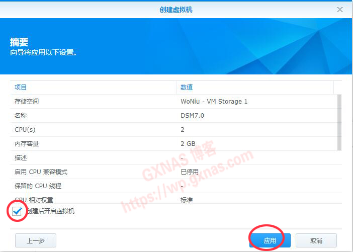 十四、勾选左下角“创建后开启虚拟机”,应用;