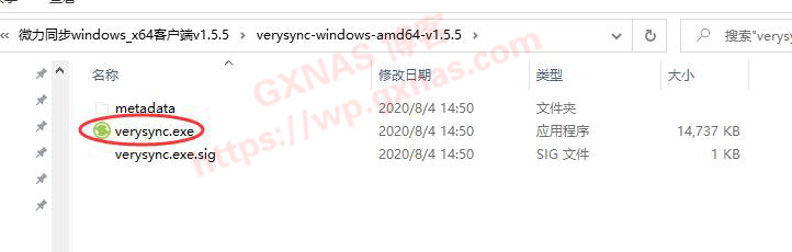 15、解压出来的文件夹有一个可执行文件“verysync”,运行它;