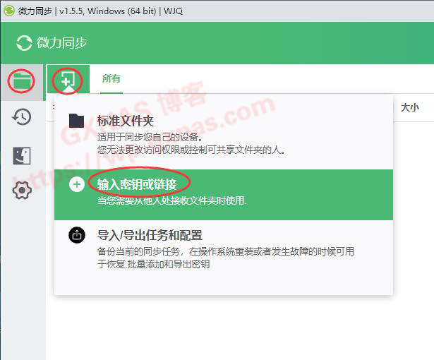 17、左边菜单栏点加号,选“输入密钥或链接”;