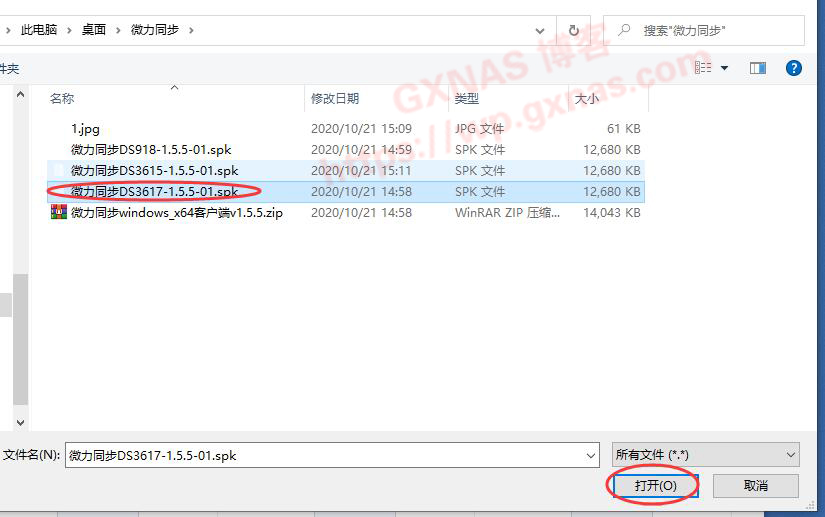 2、选中事先下载到电脑上的微力同步DS3617的安装包,点“打开”;