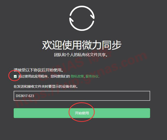5、在群晖的桌面,会自动生成微力同步的快捷方式,点它进入;