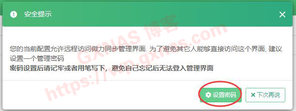 7、默认是无密码登录,所以提示需要设置密码,点“设置密码”;