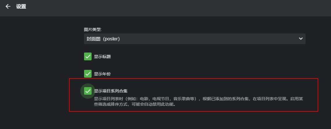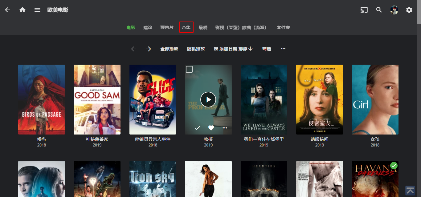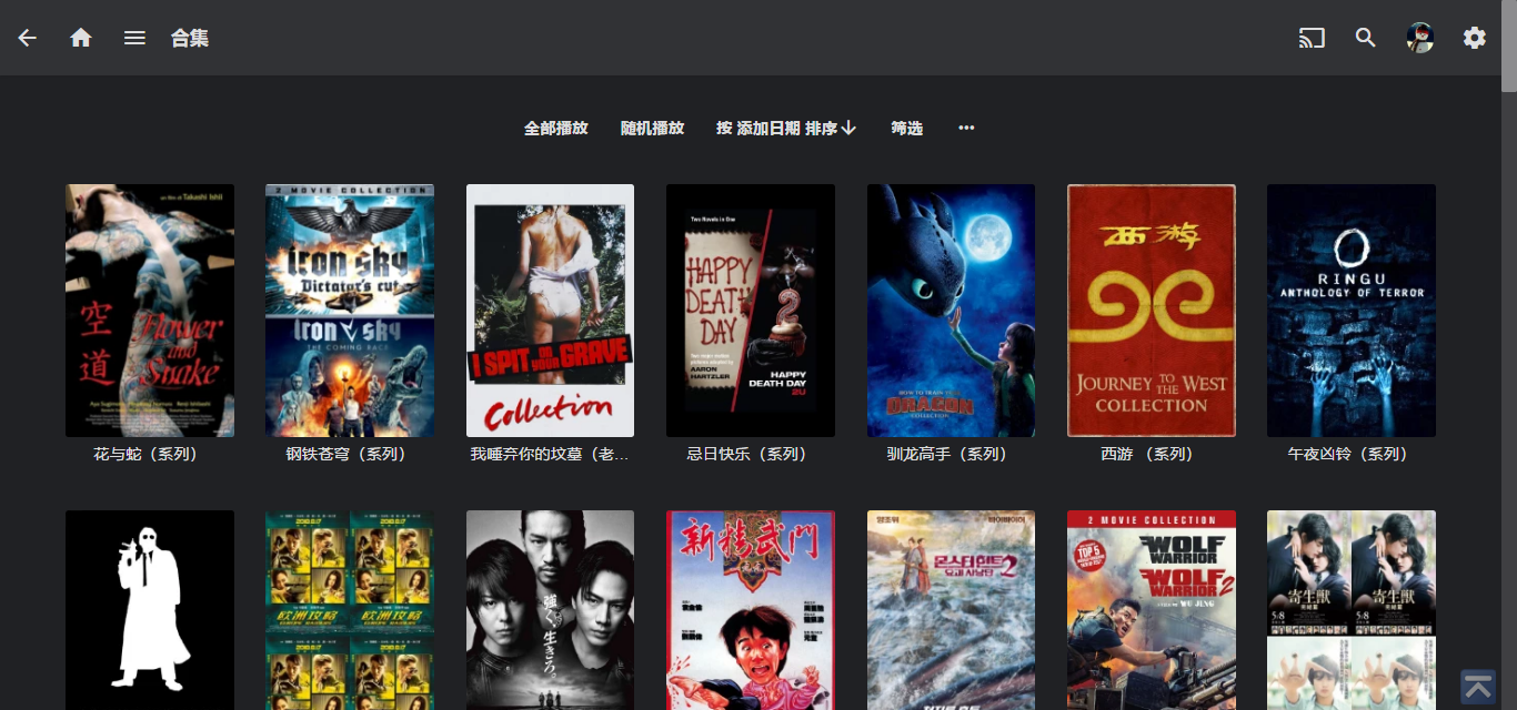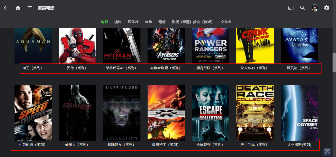每一个电影媒体库上面都会一个合集,点击就可以看到有那些系列影片了。