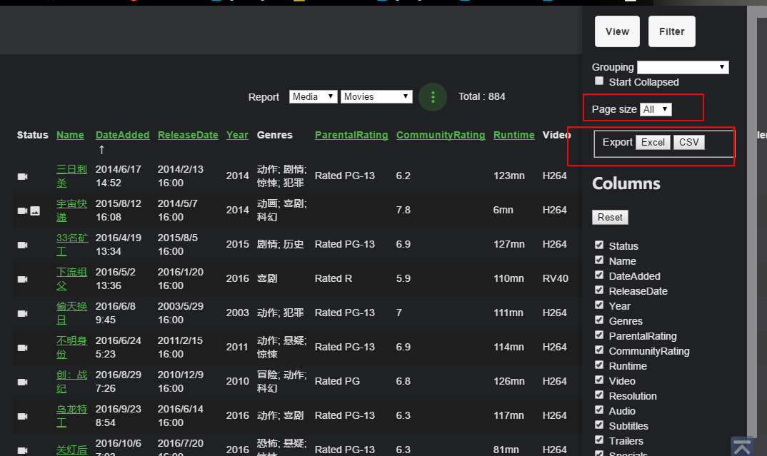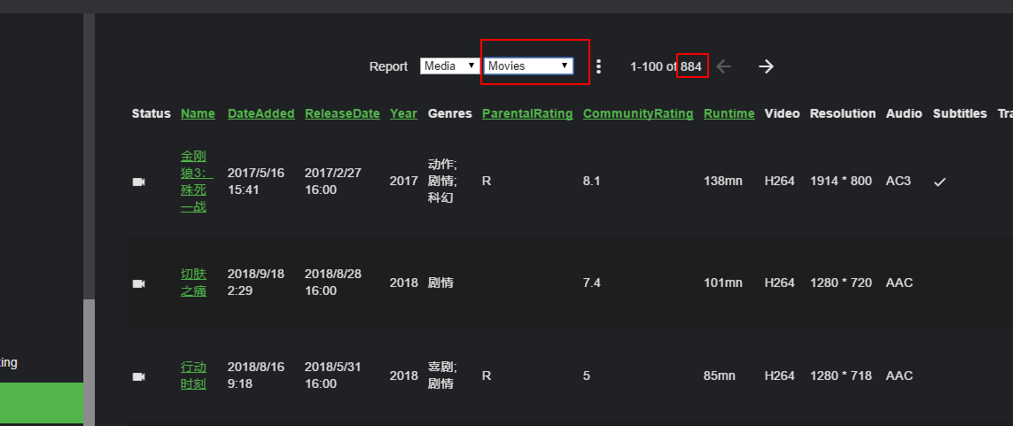 比如我的所有电影媒体库有884部影片。