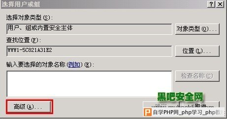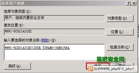 然后点击高级,找到IUSR_xxxx(后边部分会根据不同的主机是不一样的,只要前面有包含IUSR_就行)然后点击确定.