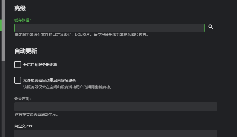登录声明这个,也就是其他人登录你的EMBY服务器后,会显示你写的信息内容。比如这里添加無情天的EMBY服务器,其他人登录后,会在EMBY界面底部显示 無情天的EMBY服务器
