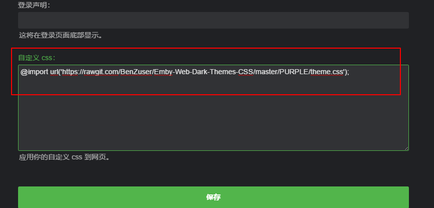 这里给出官方的CSS样式代码地址:https://benzuser.github.io/Emby-Web-Dark-Themes-CSS/