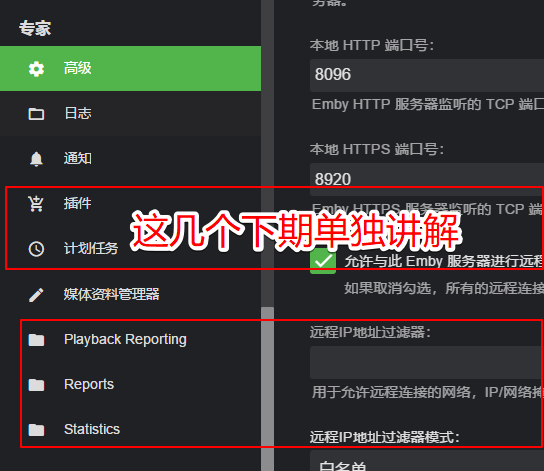 以上是大致的功能与设置,重点是下面的媒体库添加与设置,如果设置不好,会造成刮削不准,或者是刮削不到等,所以下面的才是本帖的重点。