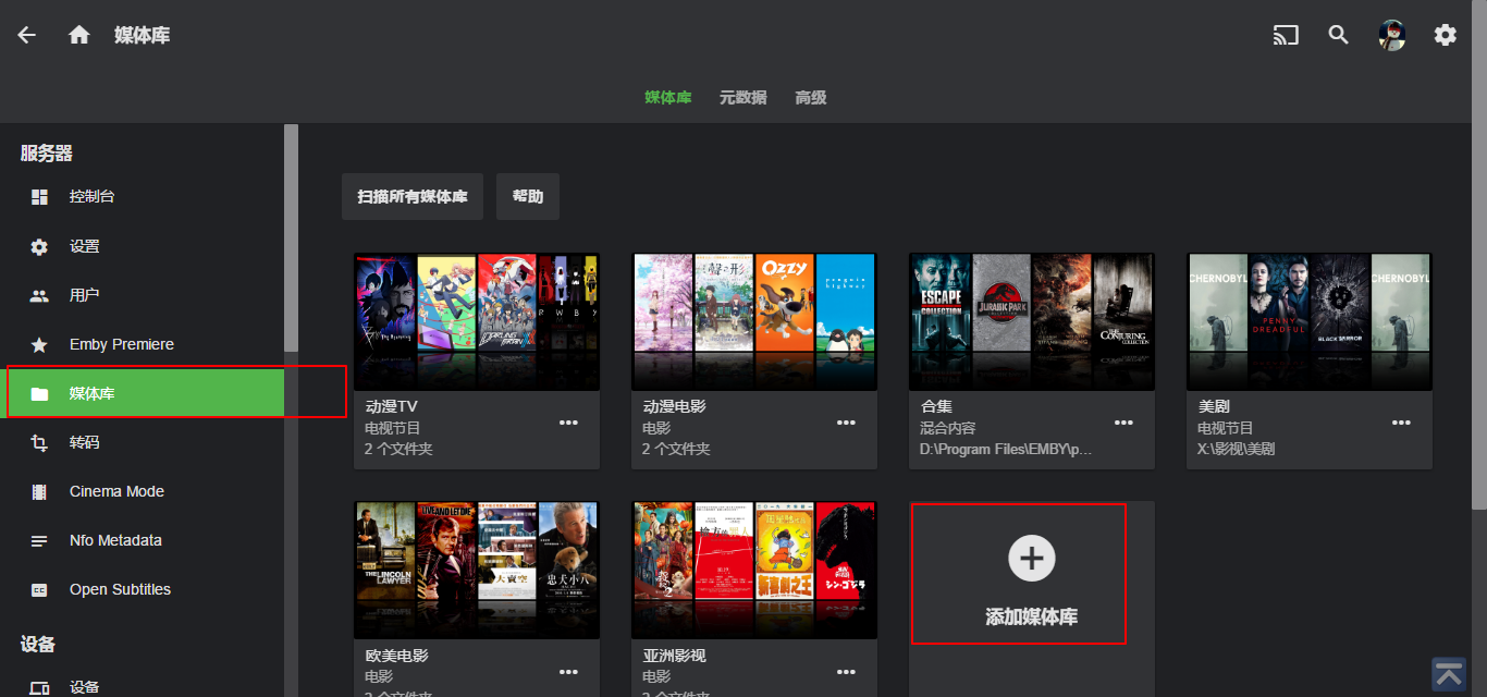 选择媒体库-添加媒体库
