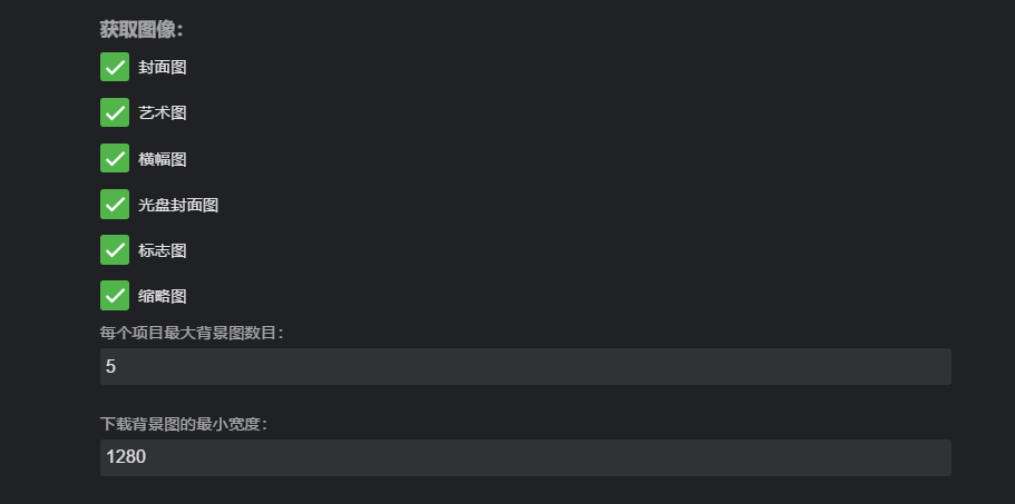 全部开启,这样图片类型才会全面,每个项目的最大背景图数目,设置5即可,多了会增加磁盘空间,少的话,就一张图,翻来覆去看那么一张图也没啥意思,设置5最好。