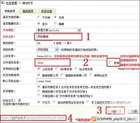 (1)例如:我们在正常情况下建立一个栏目“网络营销” 如下图