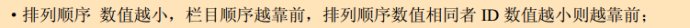 “排列顺序”的数值越小,则栏目排序越靠前;如果两个栏目的“排列顺序”数值一样大,那么那个栏目对应的ID数值越小则栏目排序越靠前.
