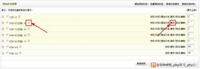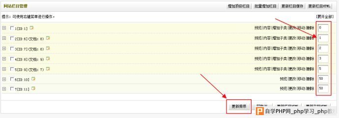 为了省去不必要的麻烦,个人感觉平时只要对排列顺序进行修改即可,另补充关于批量修改”排列顺序“从而实现修改首页栏目排序的方法.