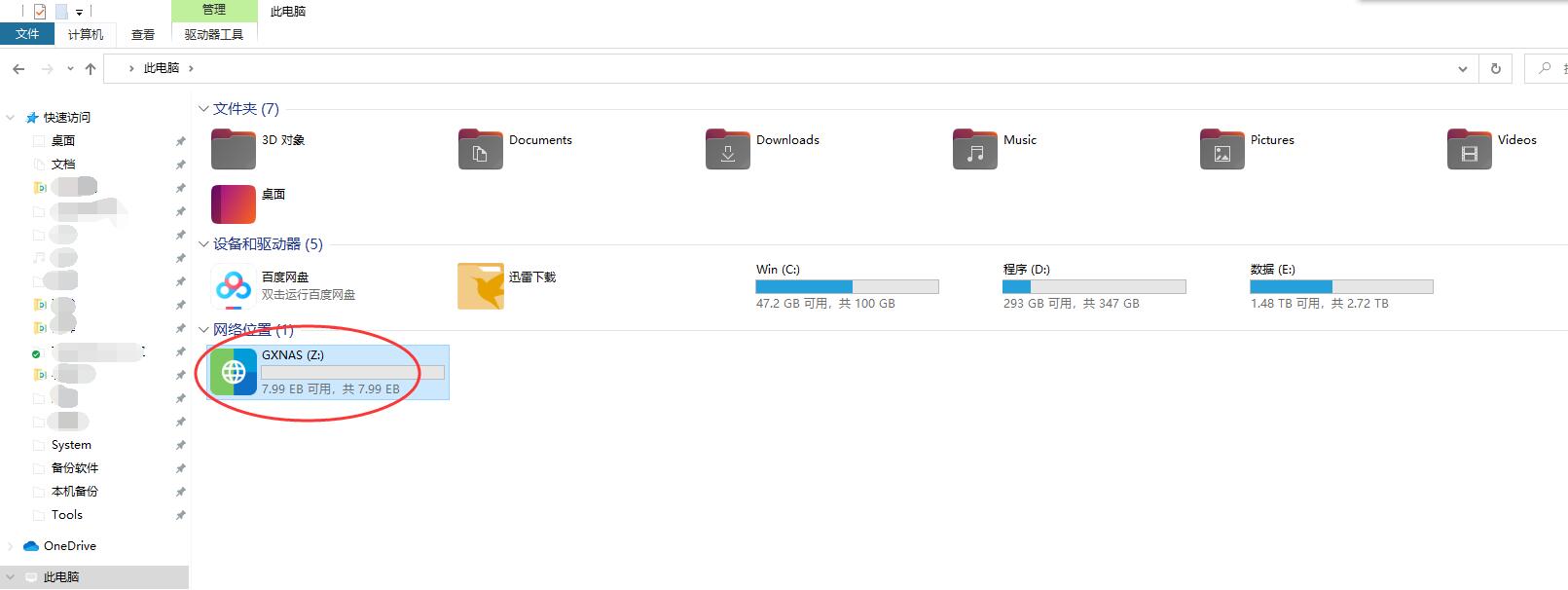7、回到此电脑,就看到刚刚映射的盘符了;