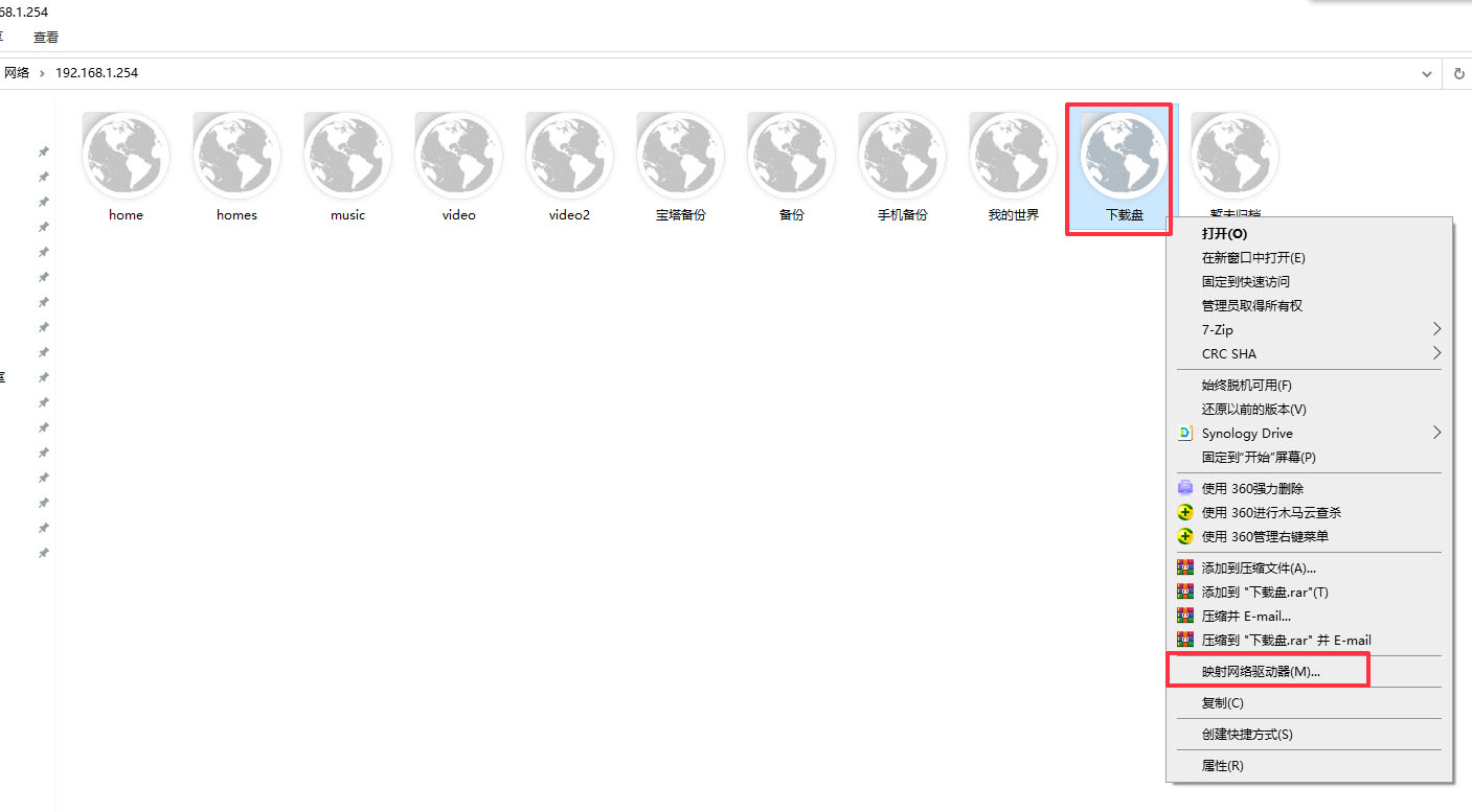 5、如果想把某个文件夹映射成一个驱动器,可以在这个文件夹右键,选:映射网络驱动器;
